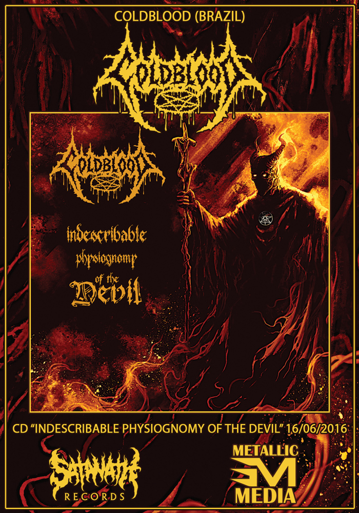 Right now the band is preparing the release of their third full-length called “Indescribable Physiognomy of the Devil”. The album, which was recorded in Brazil and mixed and mastered in Germany, has 10 new songs showing Coldblood with its feet even more nailed in the roots of the 90s Death Metal, but also adding its own identity in compositions that will surprise headbangers thirsty for an obscure, chaotic and traditional Death Metal.